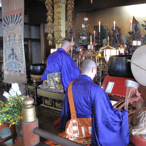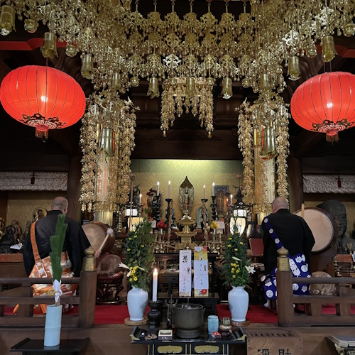 本堂や大黒天堂に祀られている大黒天様に対し、新年の商売繁盛、財運福徳、開運出世、五穀豊穣などのご利益を願って祈りを捧げます。